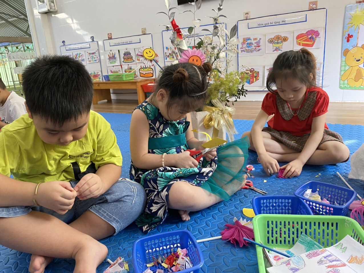 Lớp 5c với giờ Phát triển thẩm mỹ - làm hoa, hoạt động nằm trong Kế hoạch kiểm tra nội bộ đánh giá tay nghề giáo viên năm học 2022-2023.
