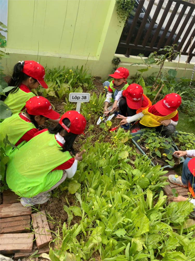 Thông qua hoạt động trải nghiệm "Chăm sóc vườn rau của bé", trẻ có cơ hội tìm hiểu đặc điểm của các loại rau như loại nào cần phải ươm sau đó chiết ra để trồng, loại nào gieo trực tiếp xuống đất hay loại nào cần phải cho leo giàn,… Với hoạt động này, trẻ có các kỹ năng sống cần thiết để chăm sóc vườn rau. Đồng thời, theo dõi được sự phát triển của cây, giúp các bé nhận biết một số đặc điểm từng loại rau và tác dụng của rau xanh với đời sống con người.