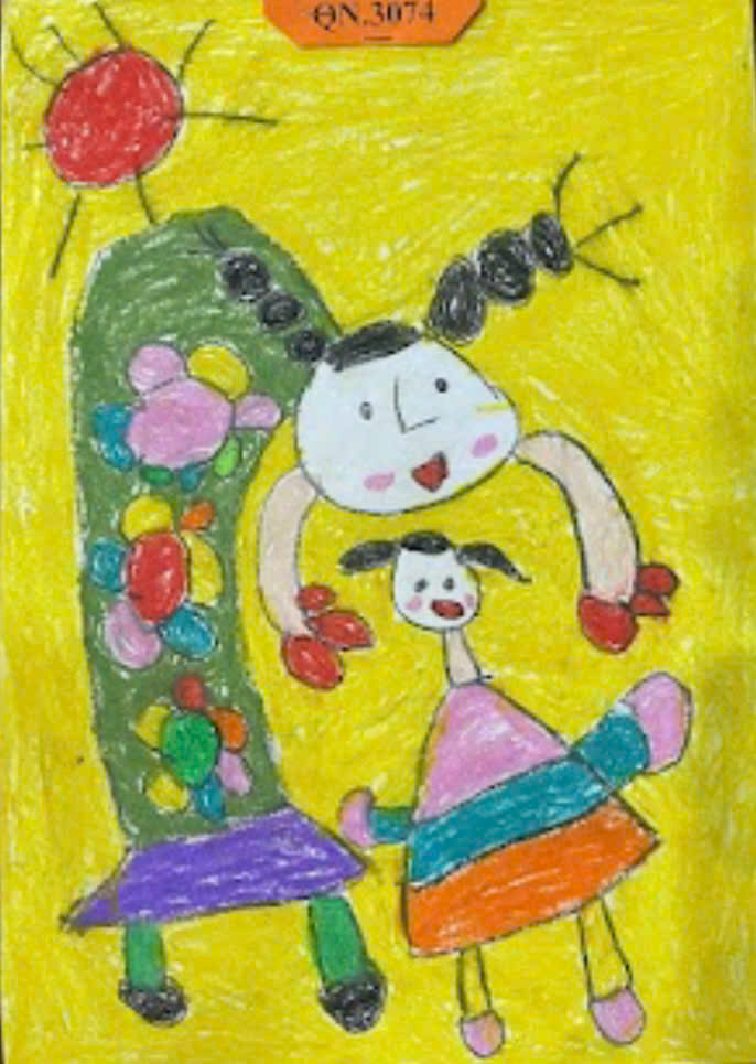 SBD: 074 - 3TUỔI vẽ bức tranh mang tên “Cô giáo và Em” với thông điệp: