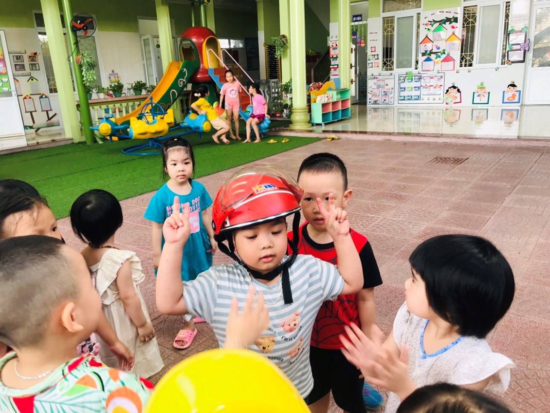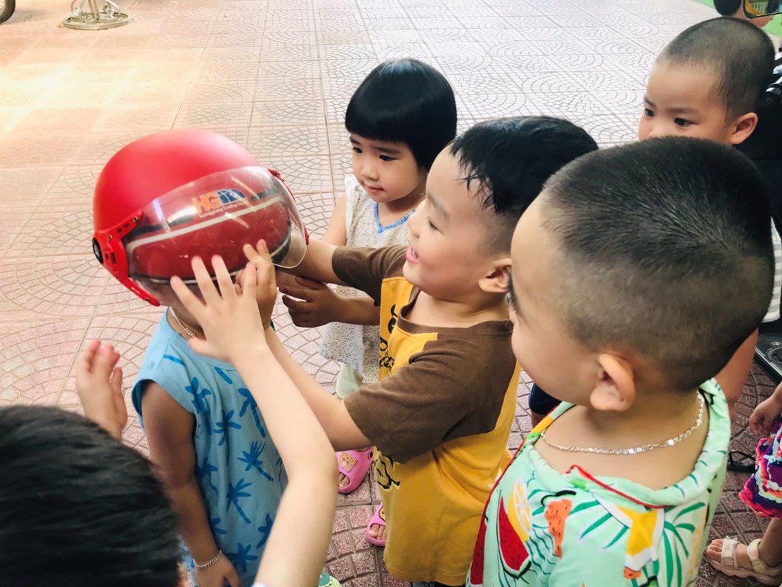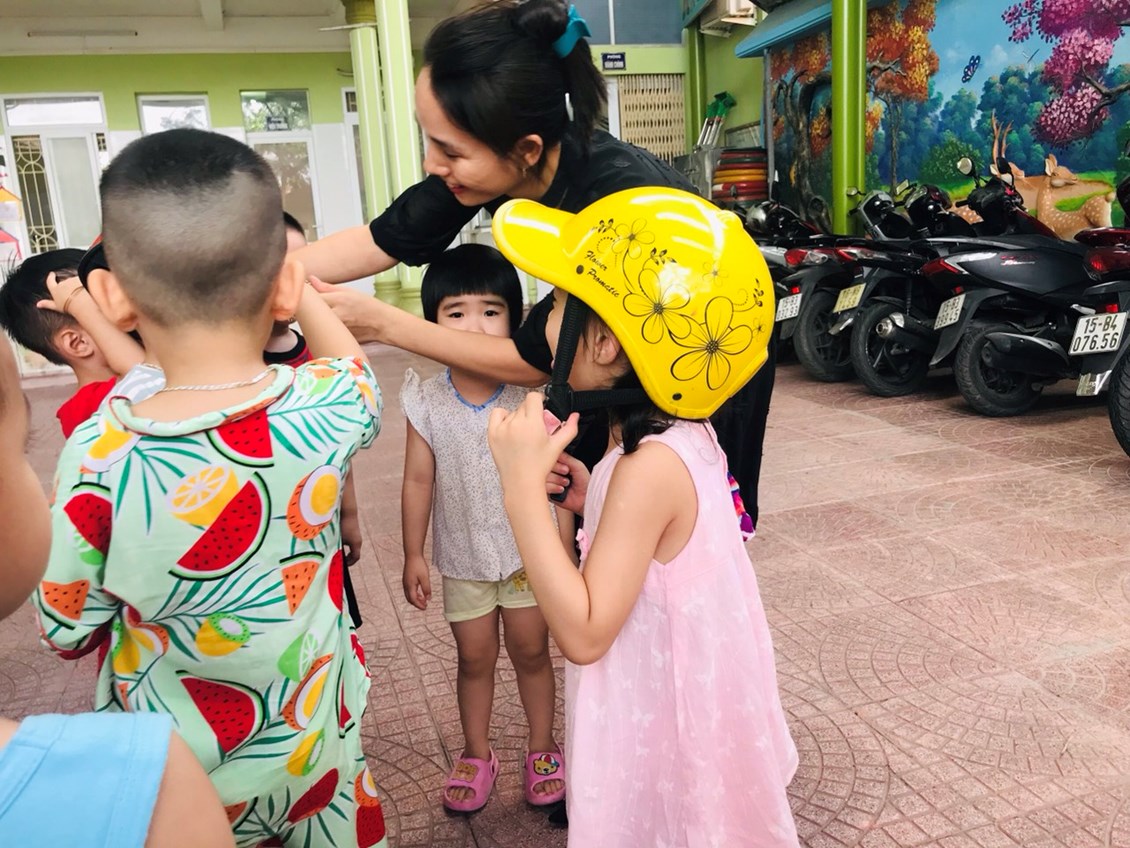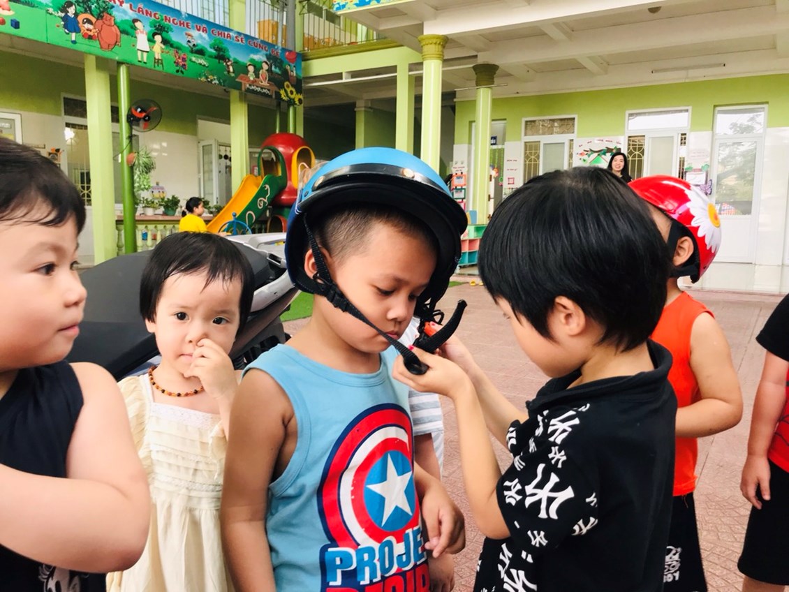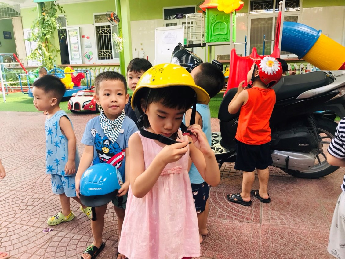 Chúng ta cùng đến với buổi giáo dục an toàn giao thông đối với các bé LỚP 3 tuổi mang tên "Đội mũ bảo hiểm".