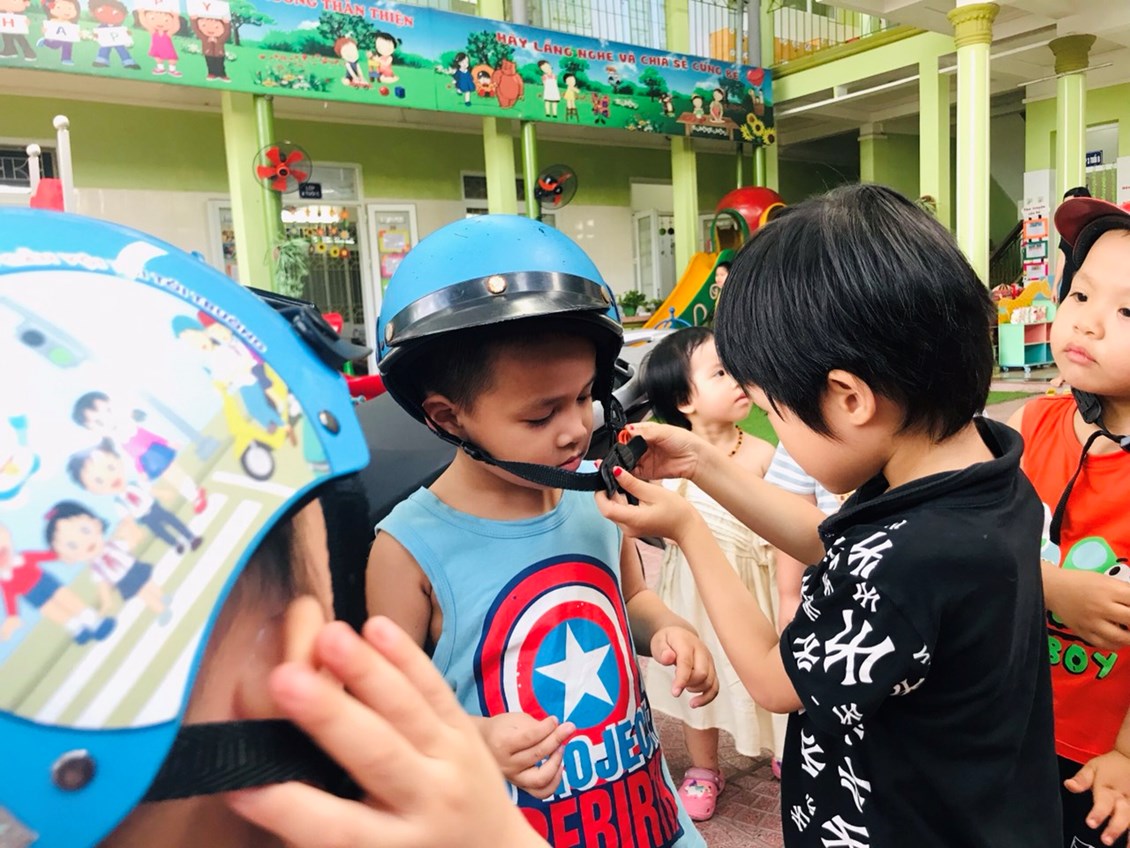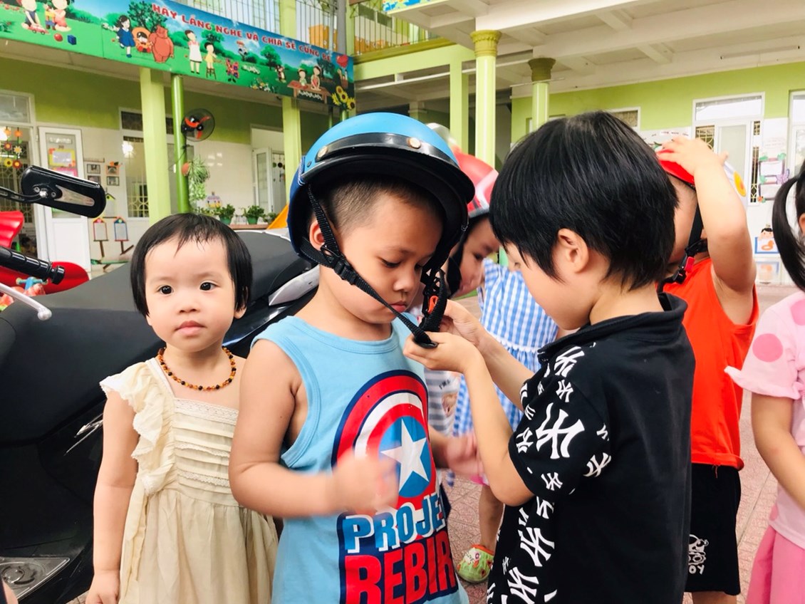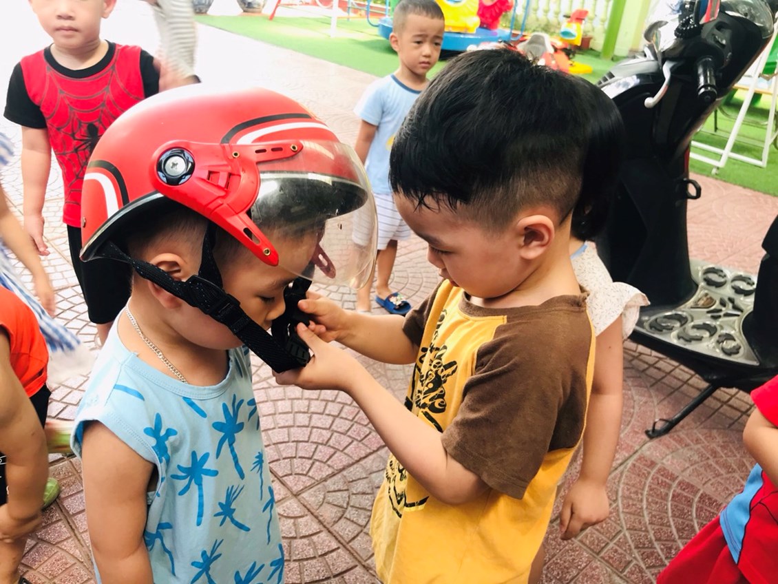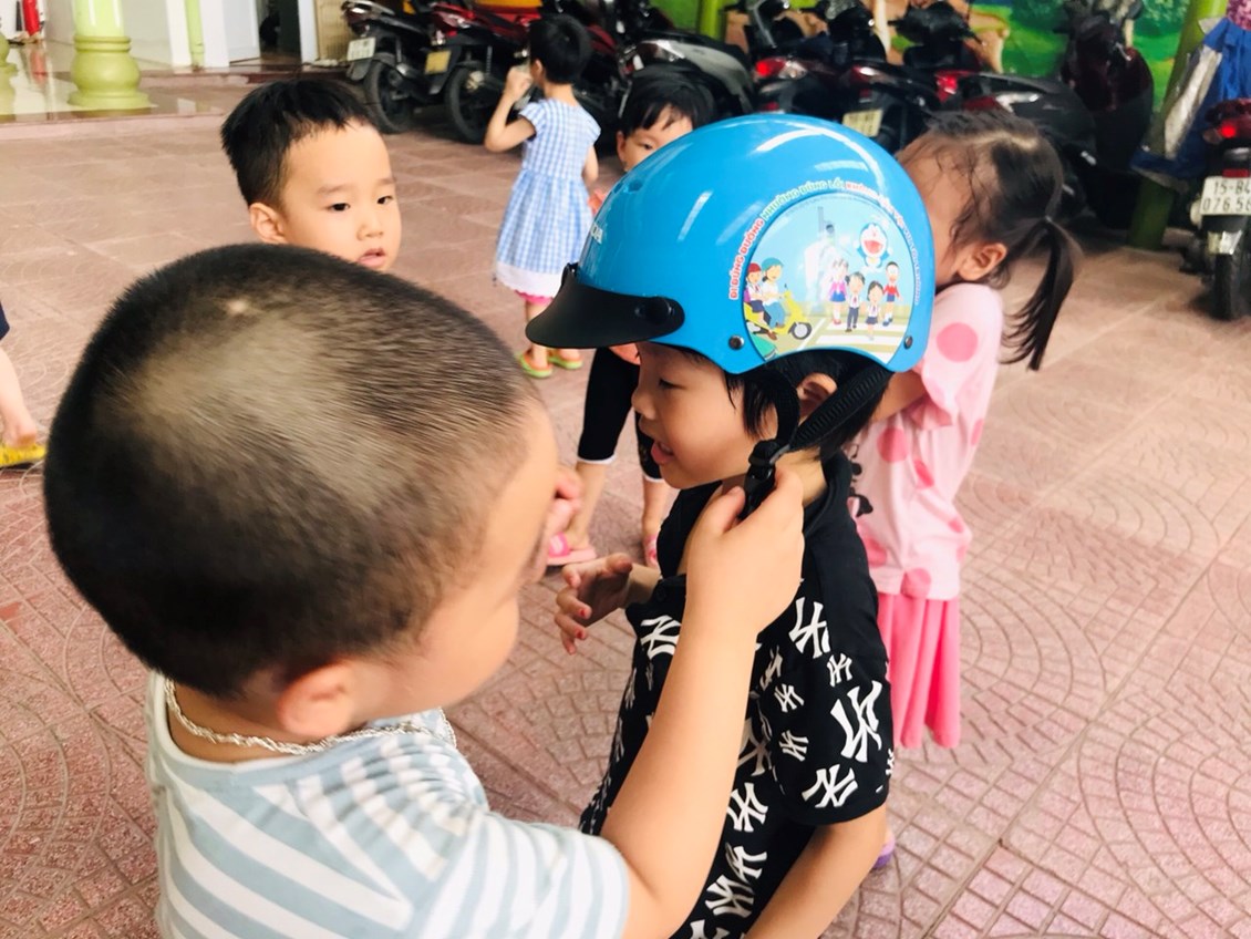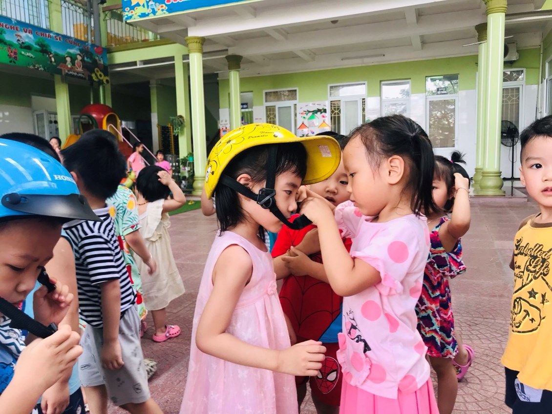 Chúng ta cùng đến với buổi giáo dục an toàn giao thông đối với các bé LỚP 3 tuổi mang tên "Đội mũ bảo hiểm".