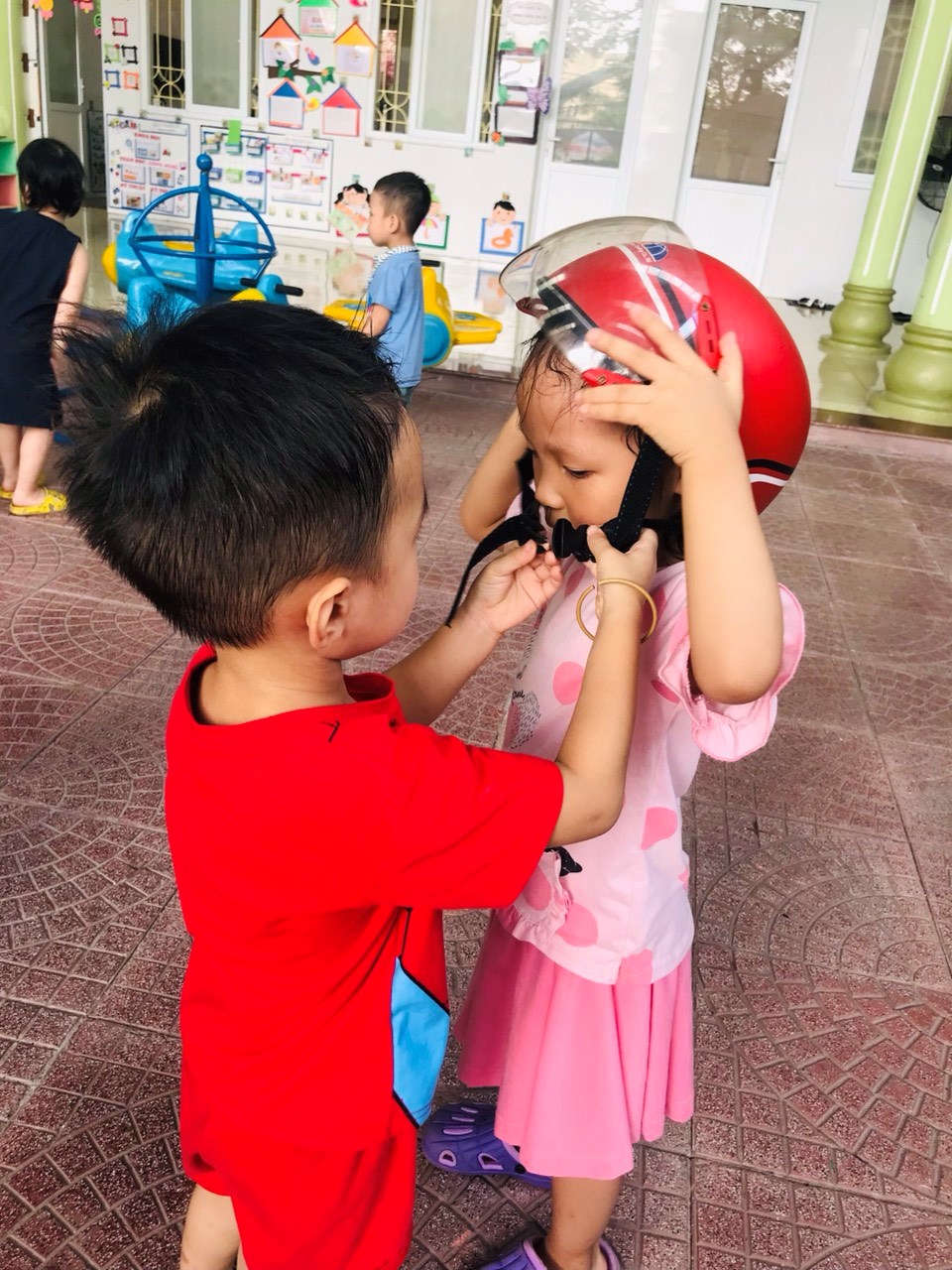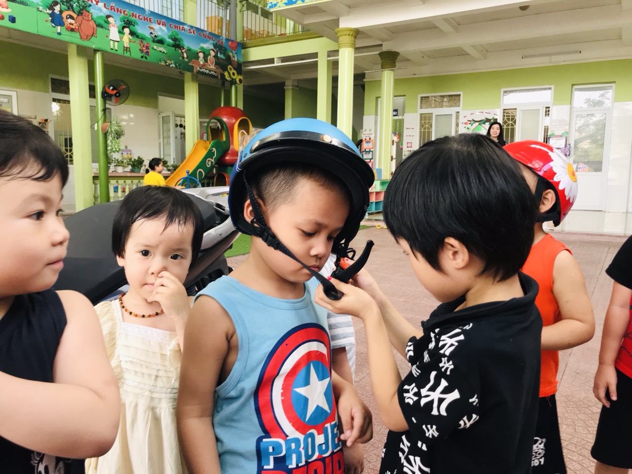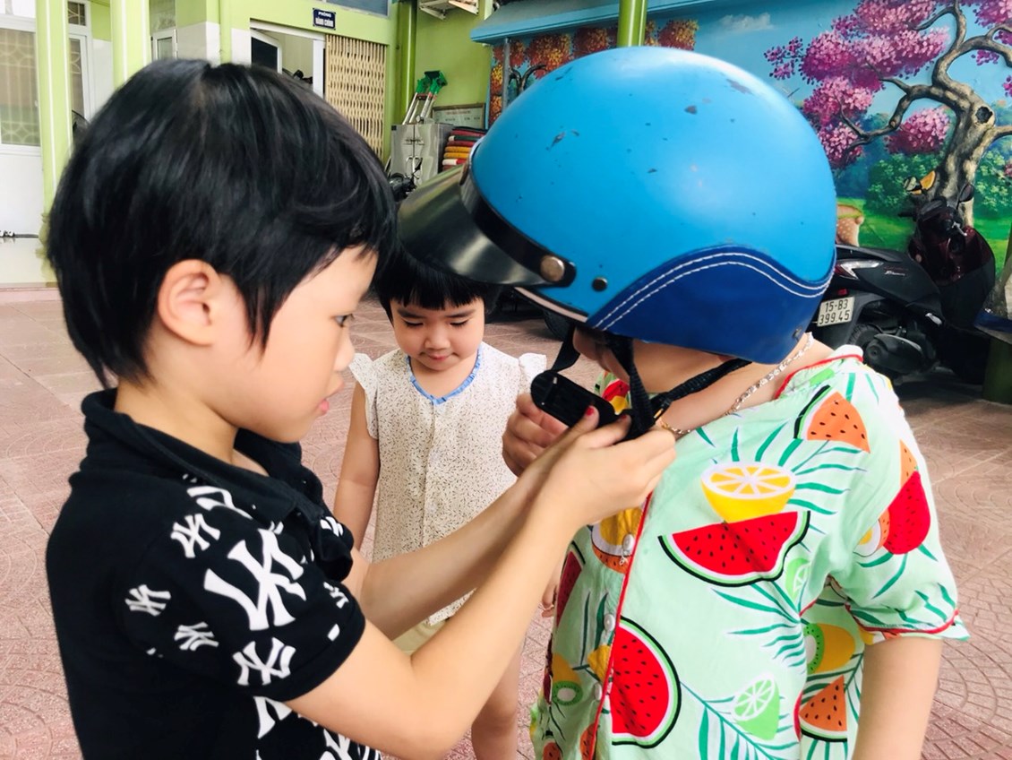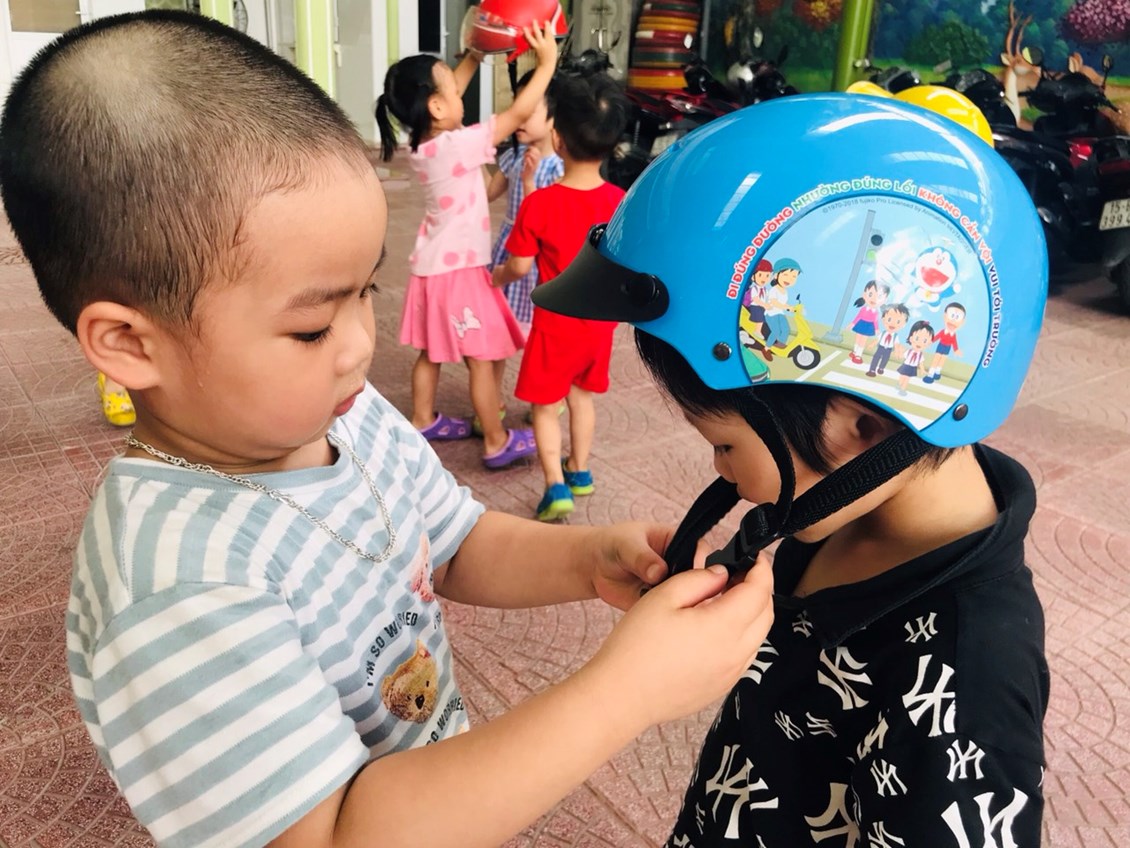 Chúng ta cùng đến với buổi giáo dục an toàn giao thông đối với các bé LỚP 3 tuổi mang tên "Đội mũ bảo hiểm".