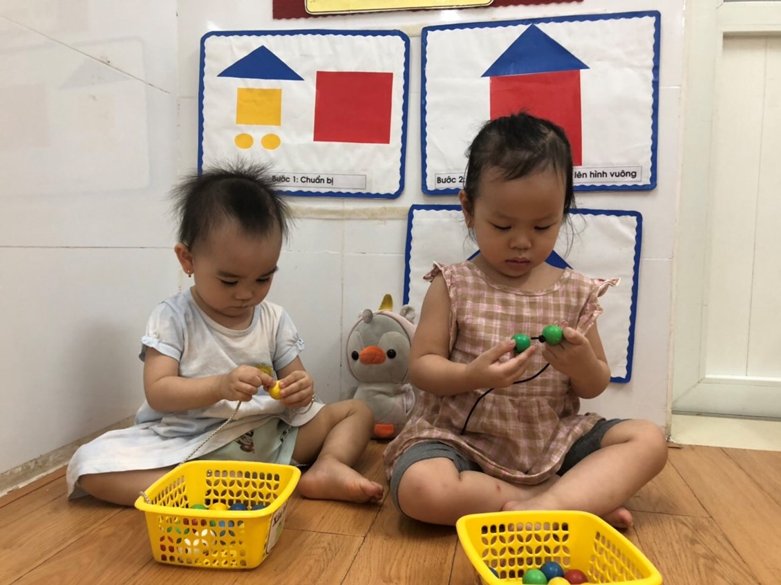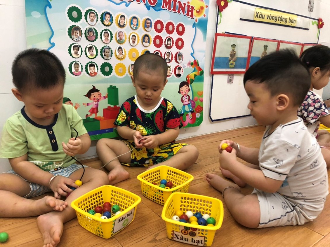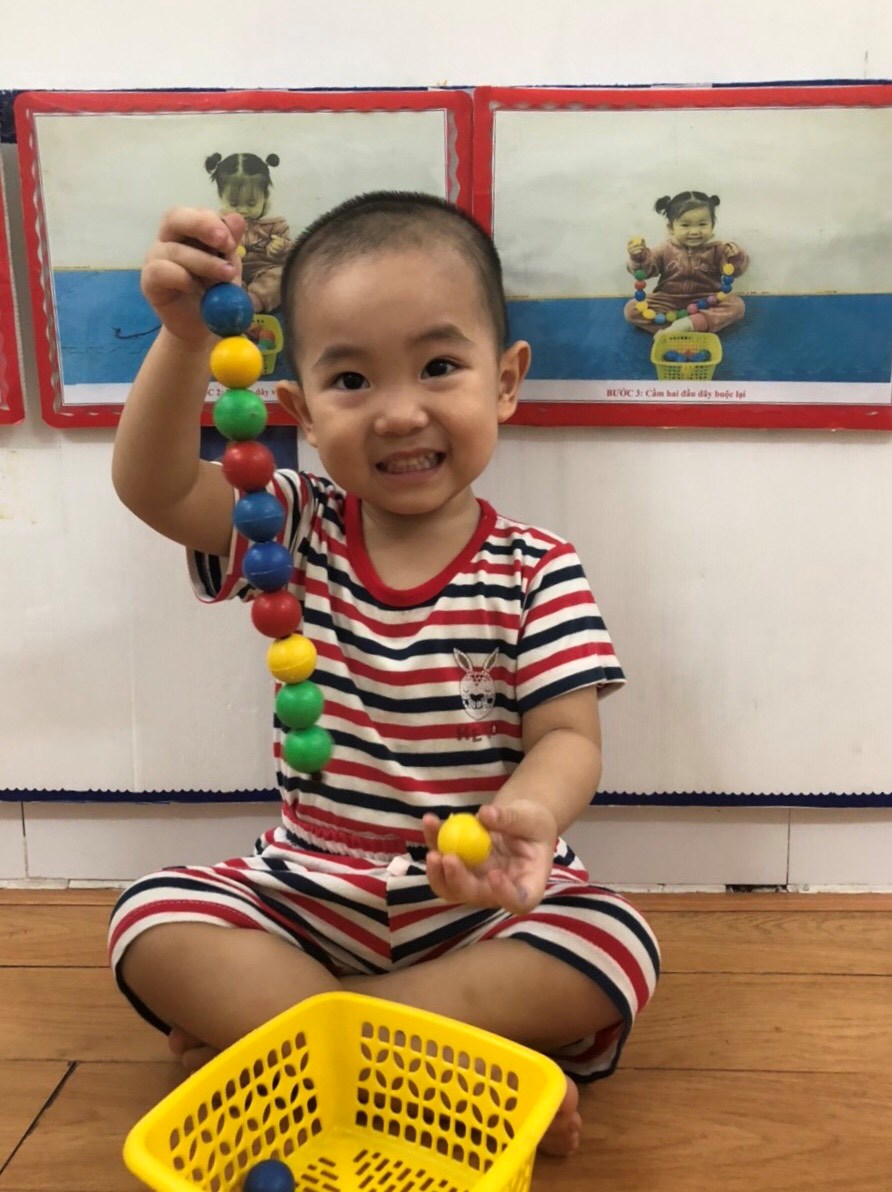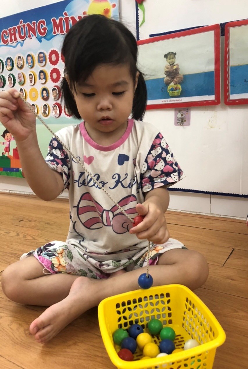 Vừa giúp cô giáo, vừa rèn luyện vận động của các ngón tay để trở nên khéo léo hơn.
