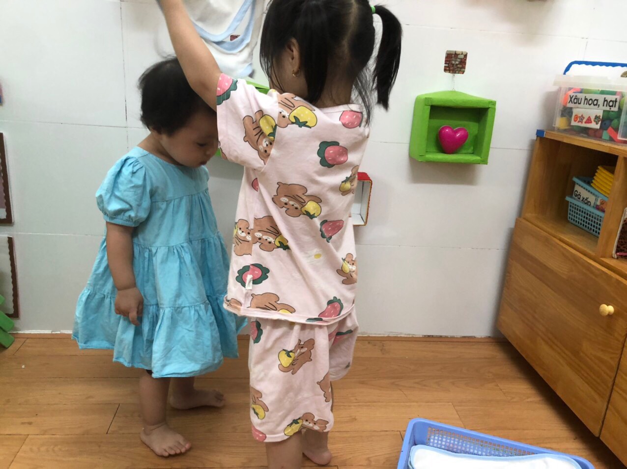 Vô tình chúng tôi bắt gặp khoảnh khắc dễ thương tại LỚP NHÀ TRẺ khi 1 cô bé đang loay hoay tháo yếm ăn sau bữa ăn. Bạn cùng lớp thấy vậy hỗ trợ tháo cùng và xếp gọn gàng vào rổ. 💝💝💝